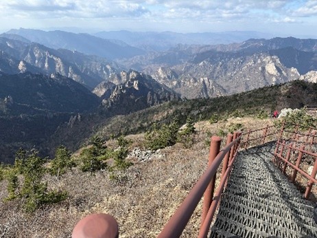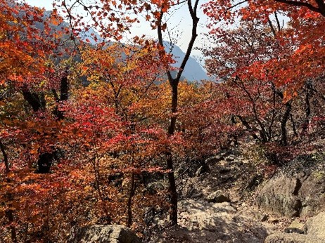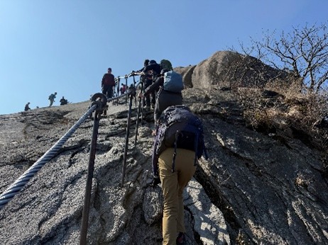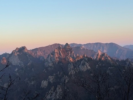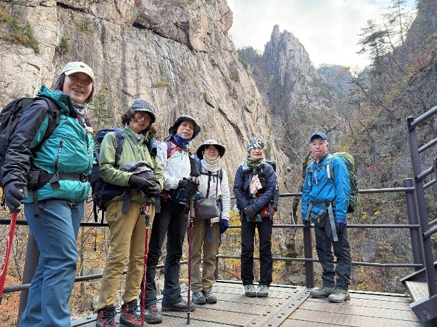 企画の段階から変更が多く苦労したが、その甲斐あって参加者の満足度が高い例会になった。 韓国の山は特徴的な岩山が多く標高は高くないが面白い。今回の最高峰は大青峰(デチョンボン)1708mだが、山頂は氷点下の強風で寒かった。小青待避所は暖房が効き快適。夜間に若干の降雪があったが、軽アイゼンを使うまでは至らなかった。六甲の真冬より寒い感覚。 ソウル近郊の北漢山は最高気温10°程度で快適だった。紅葉もきれいで秋と冬両方を楽しめた。 5月に下見を兼ねた個人山行でコースタイム等を検討した結果、大幅にコースを変更した。 コースタイムと難易度の事前情報はあったが、1~2割増しのタイムが必要だった。 日本では情報が少なく市販の登山地図はない。等高線の入った地図をWEB上で探した。 ジオグラフィカ又はYAMAPで現在地把握が出来ることを調べた。ジオは設定必要だが見やすい。 避難小屋は韓国国立公園事務所管轄の公営。一泊1,500円以下と安価。7月以降予約システムが抽選制に変わった。実質外国人が抽選に入れないため、抽選後空きがあれば予約可能だった。そのため避難小屋利用可否で2通りの計画を用意したが幸い予約できた。 費用は航空運賃を含め5泊6日で7万円程度。同日数の国内宿泊例会より安価であった。電車・バス・タクシーを含む公共交通機関が日本の半額程度、食事や宿舎も安いので、言葉の問題が無ければもっと例会を実施したい。 。 |