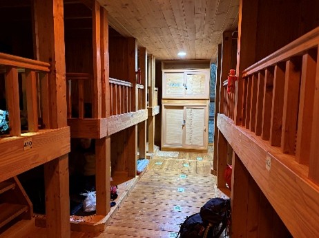 | 小青待避所(避難小屋)に到着 | 小青待避所のテラス 寒い! | 夕食は食糧持参 |