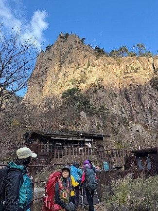 | 出発前 束草ヒュッテにて | 五色登山口(タクシーで約50分) | ファイトの掛け声で、標高差1300mの急登を登る |