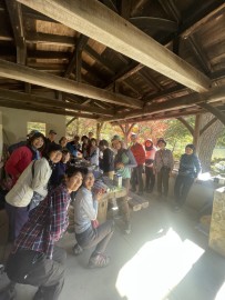 | 天候に恵まれ 紅葉もまずまず進み フレッシュメンバー15名、組織部員10名の賑やかな例会となりました。 メニューは トルティーヤでお肉や野菜を挟んだタコス・アサリのクラムチャウダー・お菓子と頑張りましたので 皆さん喜ばれていました。 準備は大変な事もありますが たくさんの笑顔に囲まれて幸せなリーダーを経験させていただきました。 フレッシュの皆さんが この先も優しい先輩や友人に恵まれて 山と共に 楽しい毎日を送られますように 私も含めて 思った一日でした。 |