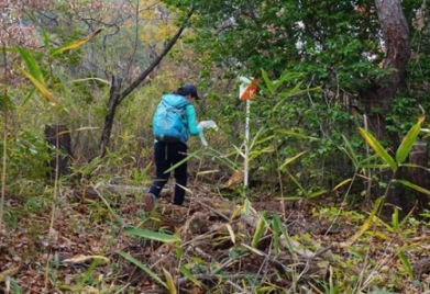 | 12年ぶりに復活「第7回OLやってみるかい(会)」を好天に恵まれ開催することができました。 1人で歩いたOL2名、OL班補助付きで歩いたOL3名と参加者は少なかったですが、OL班員と和やかに楽しく実施でき 良かったです。 リーダーに付いて歩くのではなく、地図を見て地形を確かめ先読みし、進む方向を決めて歩き特設ポストを探す。 ポストを見つけると小声で「やった!」。 興味をもっていただける方が一人でも増えればと思いました。 眠っている読図力を目覚めさせませんか。 |