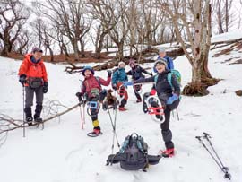 | 皆子山ピークでの記念写真。初参加の方々を迎え、雪不足の今年も実施することができました |