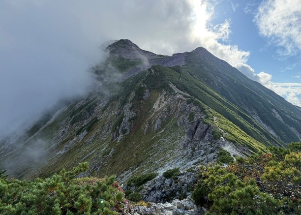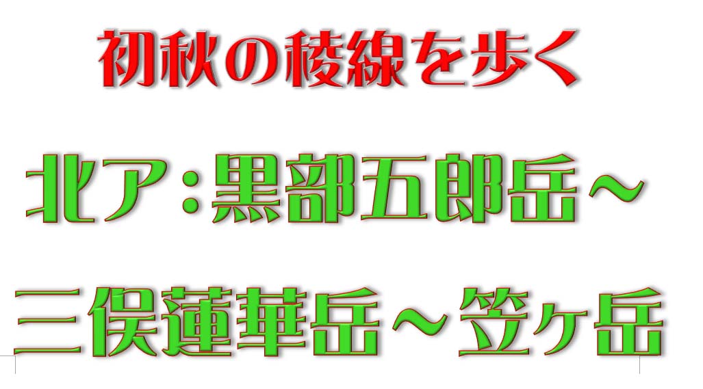 | 行 程 | 宿舎(6:00)・・・・北ノ俣岳(8:20)・・・・赤木岳(9:15)・・・・黒部五郎岳(12:15)・・・・黒部五郎小屋(14:55) |