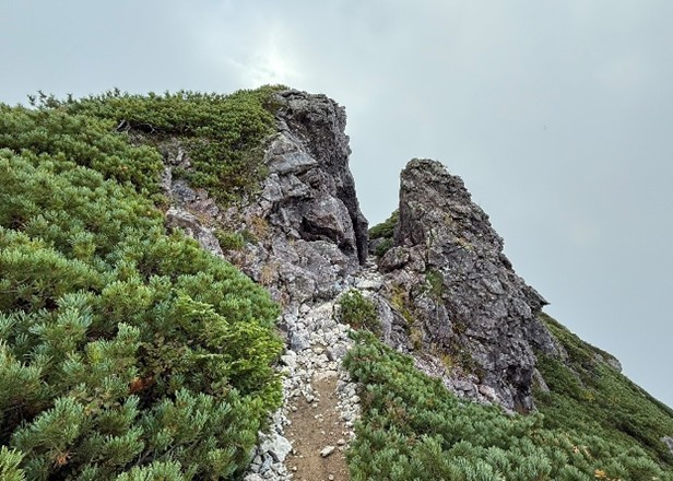| 三俣蓮華岳 本当の山頂はここから数分 | ガスが抜けて槍が見えてきた | 双六小屋までもう少し |