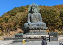 | 大仏もある | これから登る蔚山岩を仰ぐ | 断崖につけられた長い階段 |