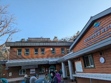 | 出発前 束草ヒュッテにて | 五色登山口(タクシーで約50分) | ファイトの掛け声で、標高差1300mの急登を登る |