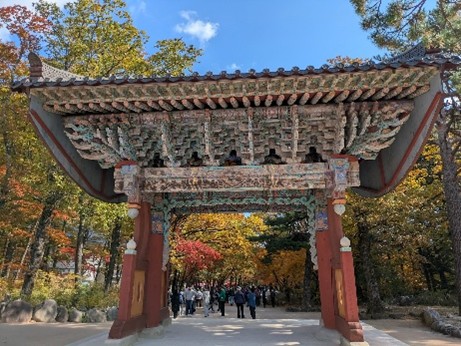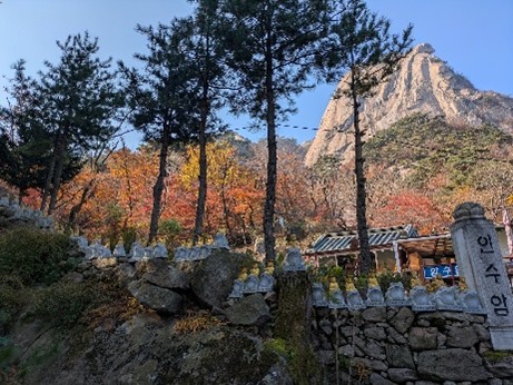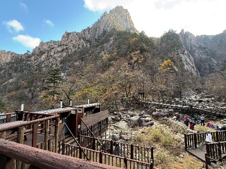| 束草ヒュッテ | 小公園 紅葉シーズンで賑わっている | 新興寺は大きな寺(その一部)群 |