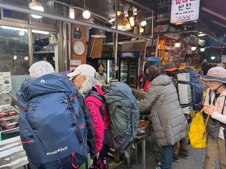 | 蔚山岩から望む日本海 | 新興寺へ無事下山 | 中央市場の食堂で海鮮料理の夕食 |