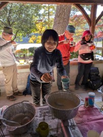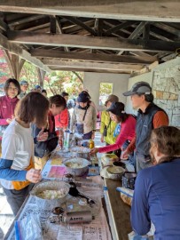 | こんな感じで、巻き巻きして食べます | クラムチャウダー出来ましたよー♪ | お代わり頂きます どうぞどうぞ | 紅葉をバックに美味しそう |