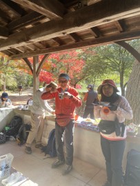 | 天候に恵まれ 紅葉もまずまず進み フレッシュメンバー15名、組織部員10名の賑やかな例会となりました。 メニューは トルティーヤでお肉や野菜を挟んだタコス・アサリのクラムチャウダー・お菓子と頑張りましたので 皆さん喜ばれていました。 準備は大変な事もありますが たくさんの笑顔に囲まれて幸せなリーダーを経験させていただきました。 フレッシュの皆さんが この先も優しい先輩や友人に恵まれて 山と共に 楽しい毎日を送られますように 私も含めて 思った一日でした。 |