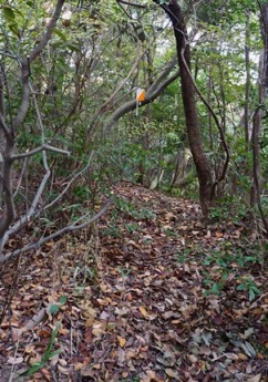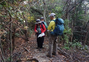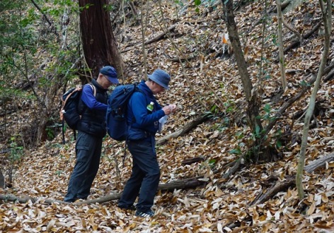 | 12年ぶりに復活「第7回OLやってみるかい(会)」を好天に恵まれ開催することができました。 1人で歩いたOL2名、OL班補助付きで歩いたOL3名と参加者は少なかったですが、OL班員と和やかに楽しく実施でき 良かったです。 リーダーに付いて歩くのではなく、地図を見て地形を確かめ先読みし、進む方向を決めて歩き特設ポストを探す。 ポストを見つけると小声で「やった!」。 興味をもっていただける方が一人でも増えればと思いました。 眠っている読図力を目覚めさせませんか。 |